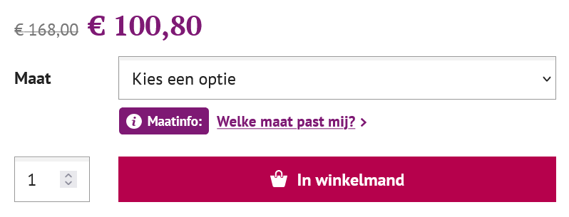 Let op het label “Maatinfo: Welke maat past mij?” zoals hier afgebeeld: