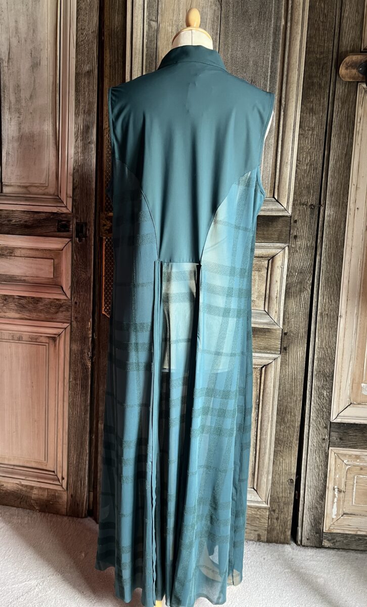 Wat apart een gilet met een lange achterkant een mooie kleur Petrol.