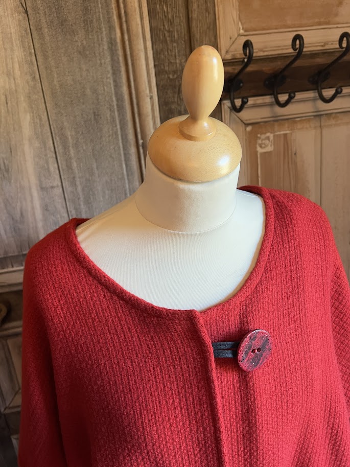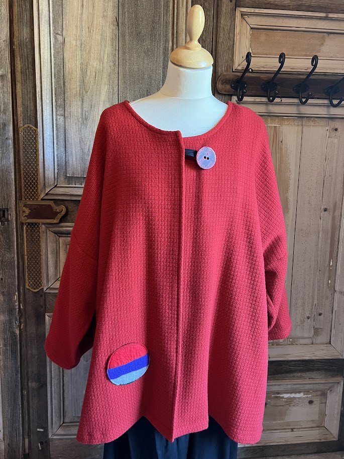 Het jasje heeft een aangename geweven textuur in de kleur rood