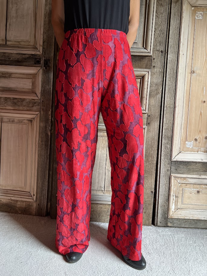 Lange broek met wijde pijpen gemaakt van een unieke stretchstof. Het heeft een elastieken band in de taille waardoor hij heel comfortabel past.