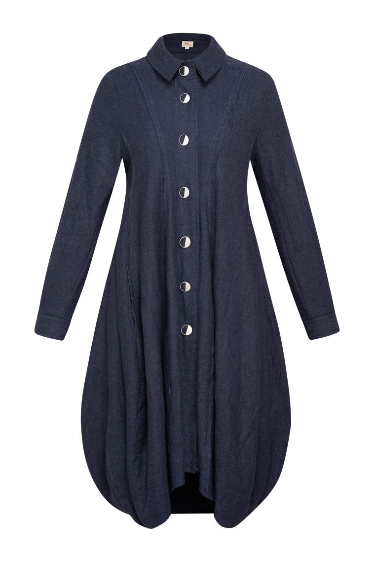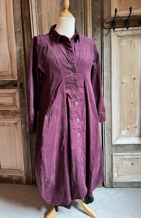 Lange tulpvormige jurk / vest van Heart, deze is ongevoerd, met knoopsluiting. Dit model heeft een lange mouw en is enkel lang