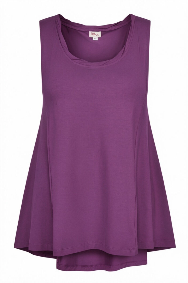 Mouwloze A-lijn top van Heart met bredere schouderbanden en een kleine draaikraag als rand langs de hals.