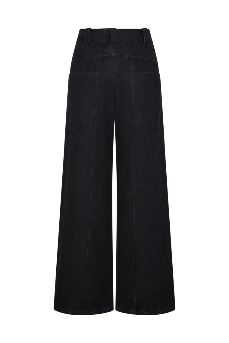 Aan de achterkant opgestikte zakken en aan de voorkant ruime insteekzakken. Het materiaal is een zwaardere denim met stretch.