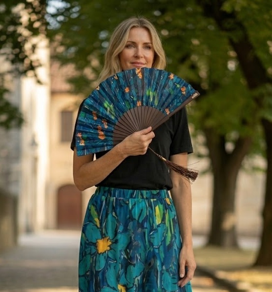 Of je nu op een terras zit, een zomerbruiloft bezoekt of op vakantie bent; deze waaier schuift gemakkelijk in je tas en biedt direct verkoeling met een koninklijk tintje.