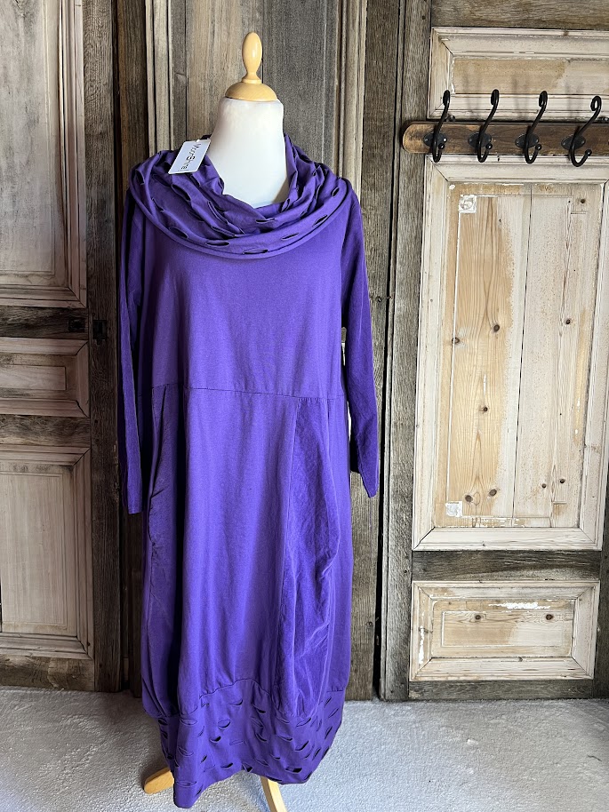 Mooie jurk met lange mouw en ronde hals met aparte sjaalkraag