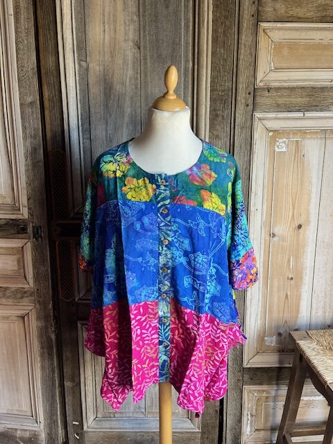 Levendig & Luchtig: Kleurrijke Patchwork Blouse van Natuurlijk Rayon