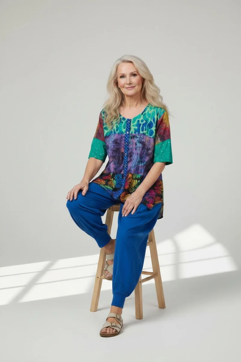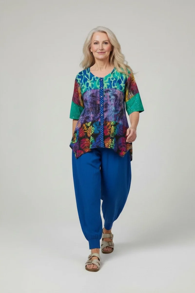 Levendig & Luchtig: Kleurrijke Patchwork Blouse van Natuurlijk Rayon