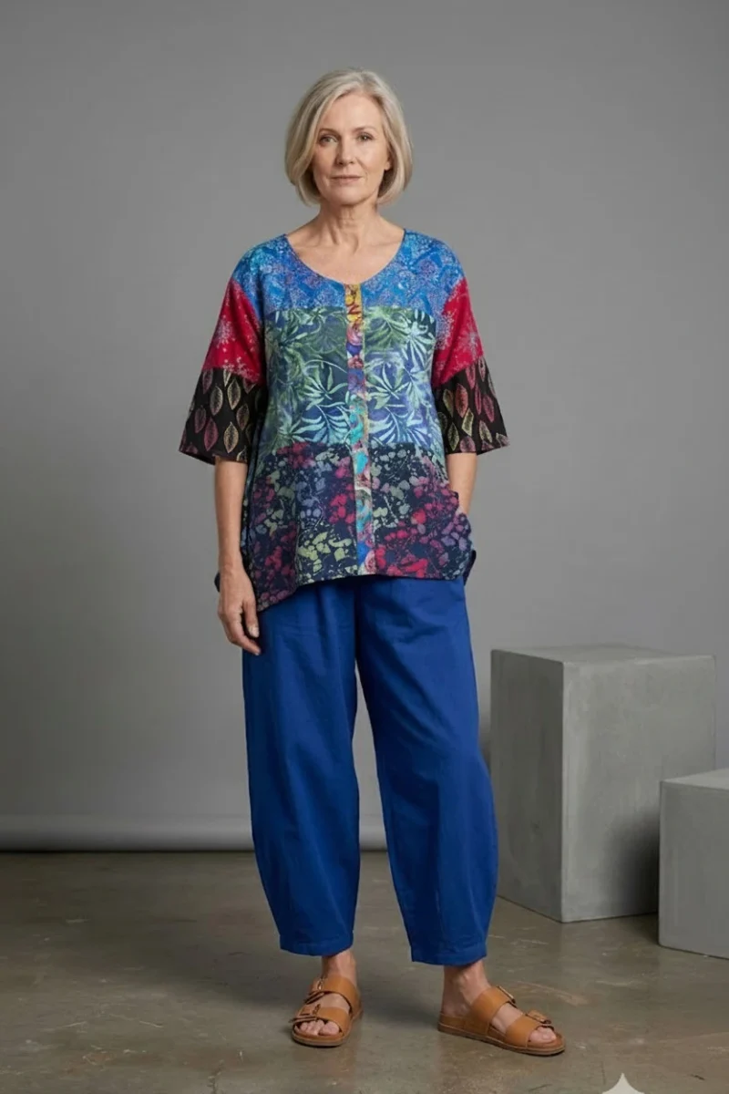 Levendig & Luchtig: Kleurrijke Patchwork Blouse van Natuurlijk Rayon