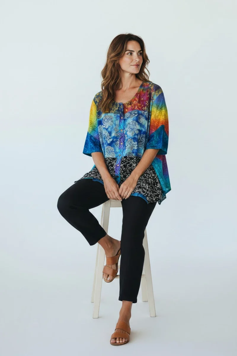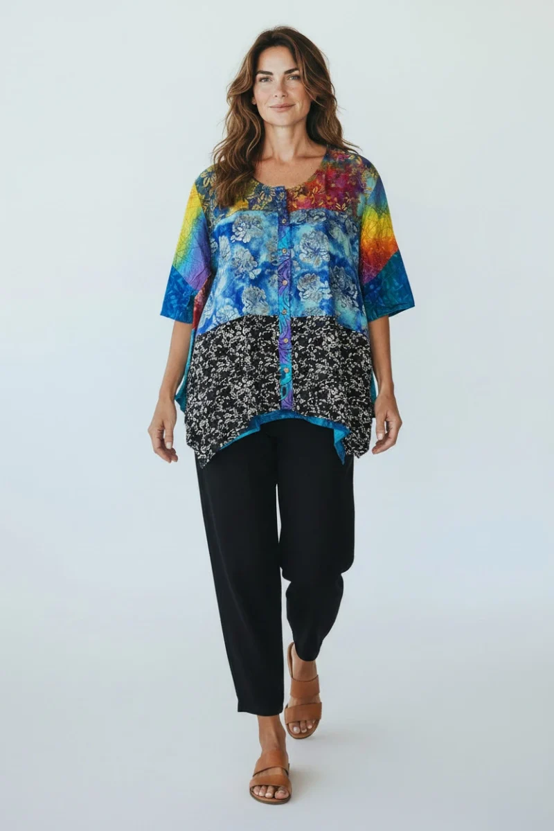 Levendig & Luchtig: Kleurrijke Patchwork Blouse van Natuurlijk Rayon