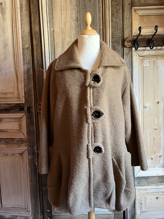 Deze jas is ongevoerd, heerlijk warm en comfortabel. De drie opvallende knopen aan de voorzijde zijn een speels detail dat deze one-size jas van Normal Crazy compleet maakt.
