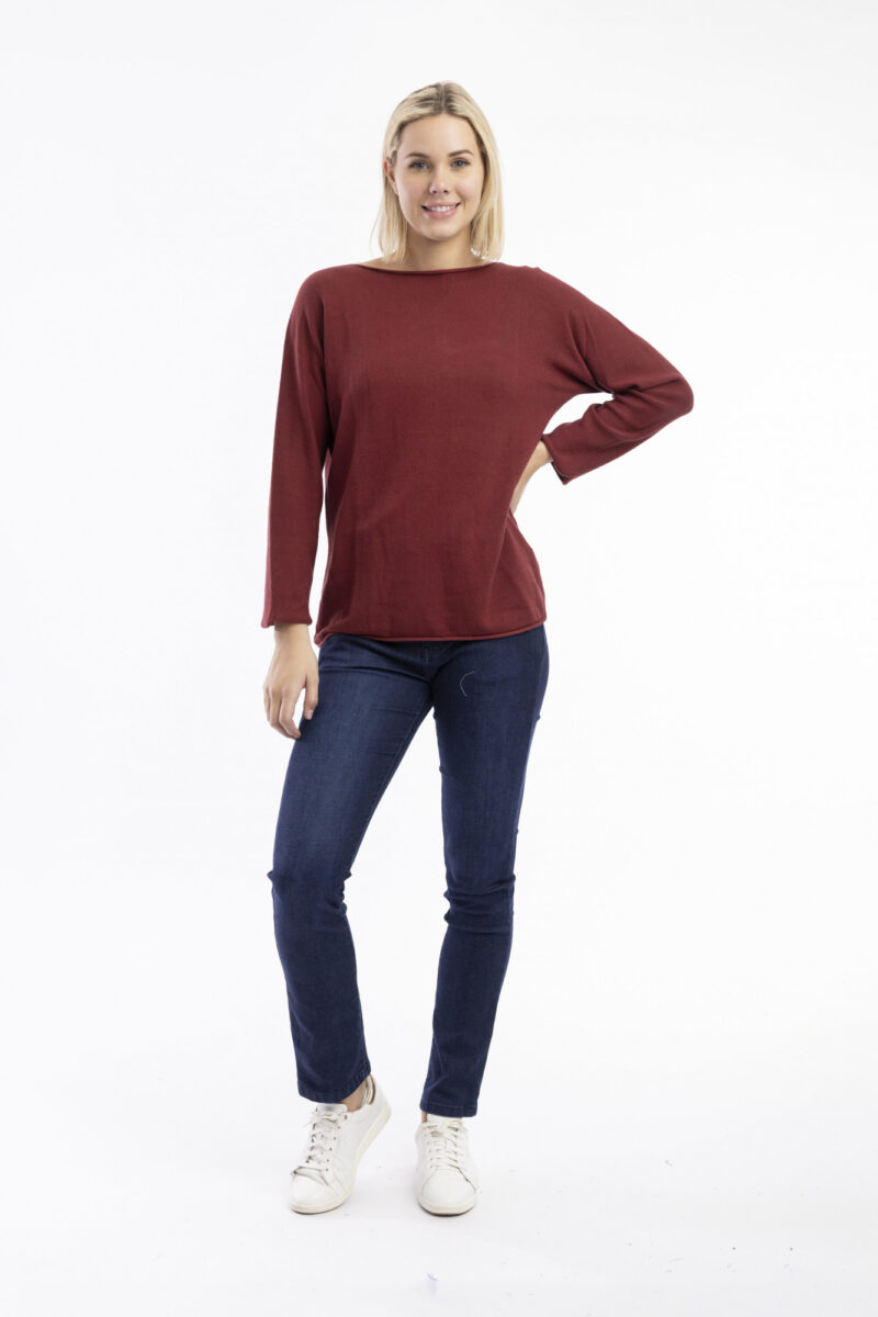 Onze gebreide top met boothals is een klassieker voor elke garderobe.